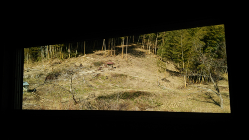 逆光で、映画のスクリーンみたいになってますが、家の中から外を取った画。