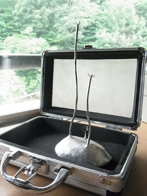 一曲目では私の作ったアルミの”芽” を弦にはさんだピアノの即興演奏。