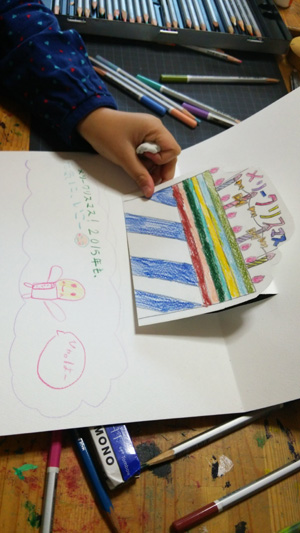 小2の女の子はクリスマスカード作ってました。