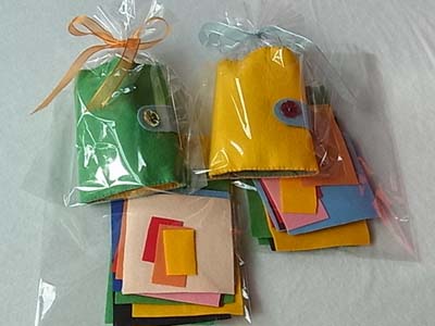 折り紙のような色とりどりのフェルトと一緒に。