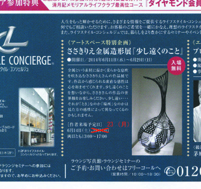 金属という素材に温かく柔らかな息吹を吹き込むささきりえさんの作品展です。