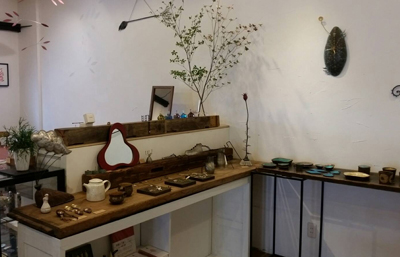 根本裕子さんの食器、あいたともえさんの籐工芸、