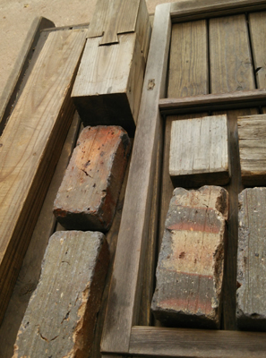 建築工房・零からもらった木材や、窓枠、レンガなどなど