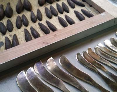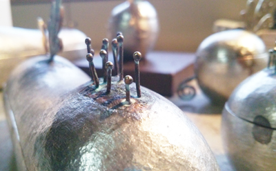 一部鋳造している箇所もありますが、金鎚でひとつひとつ作る鍛金技法で作っているので