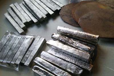 棒状の純錫を溶かして