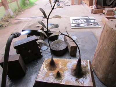 先日、ギャラリーに納めた鉄の展示台二つと