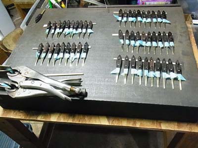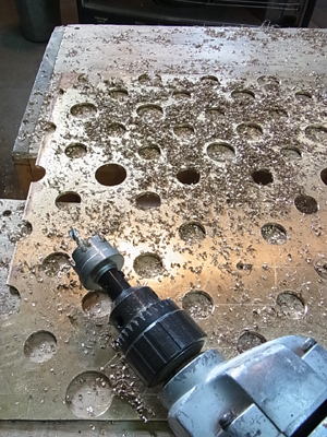 ある日は黒檀をカットし、真鍮と黒檀をぴったり合わせて黙々と穴あけること100ずつ。